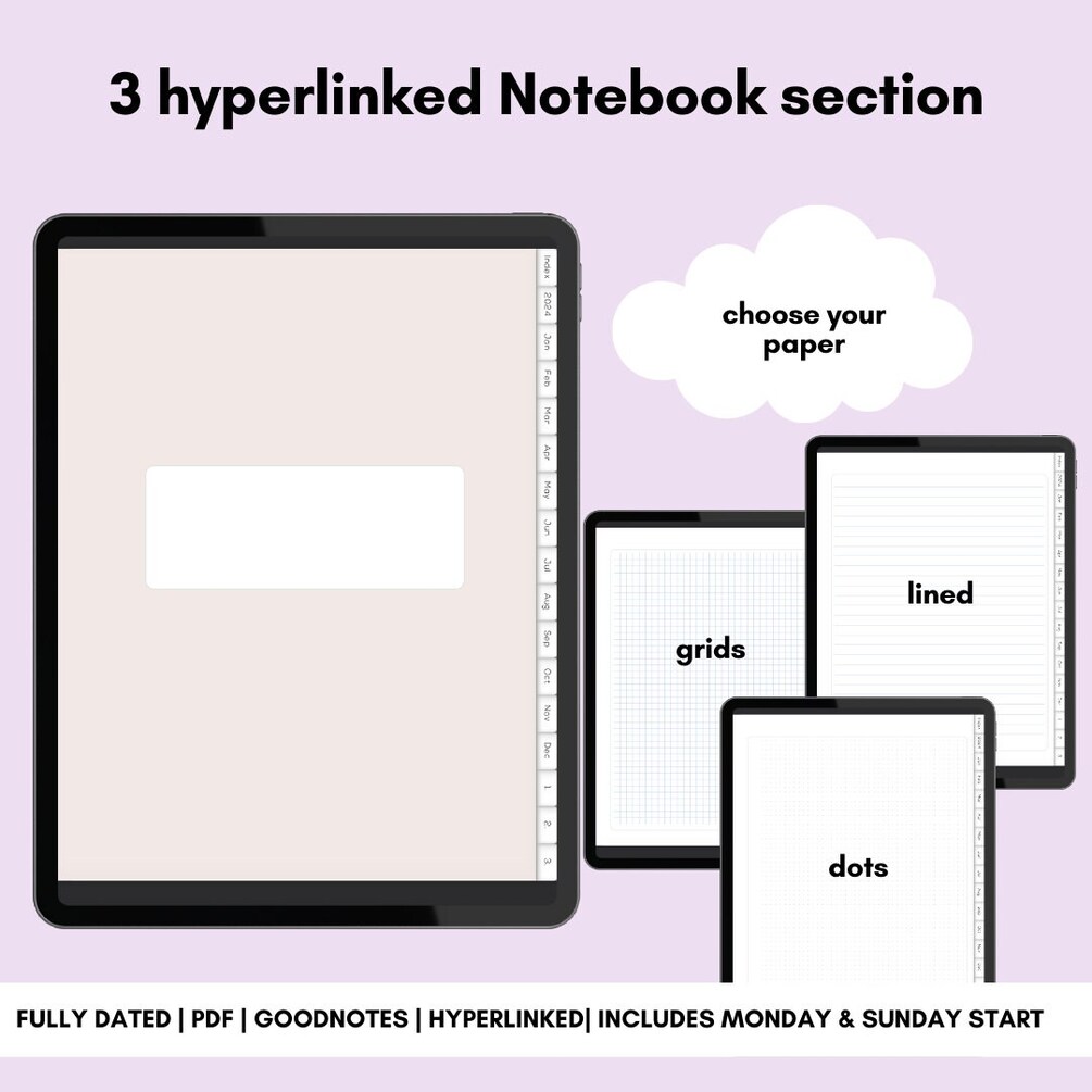 -3 Customizable Notes Sections: Tailor your note-taking experience with three distinct sections. Choose from lined for traditional note-taking, dotted for creative sketches or bullet journaling, and graph paper for data recording or technical drawings.
