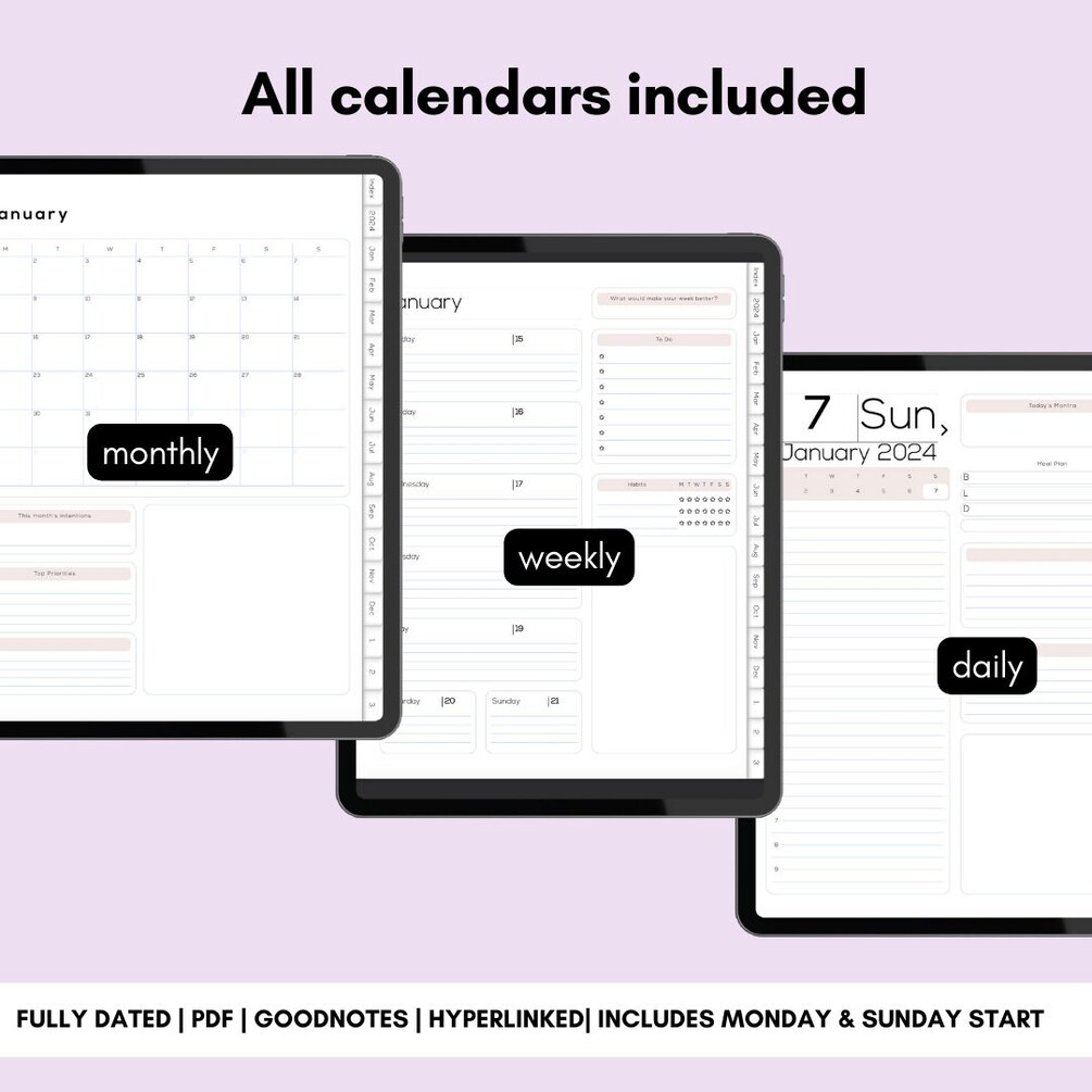 2024 Dated Digital Planner for Goodnotes, Ipad & Android | Minimalist Digital Planner | Fully hyperlinked | Sunday and Monday Start